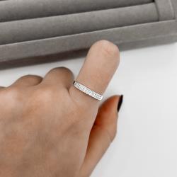 Anel meia aliança duplo cravejado com solitário | Mya Prata