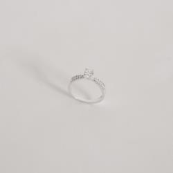 Descrição: Anel solitário 5mm fio duplo cravejado fabricado(a) em prata