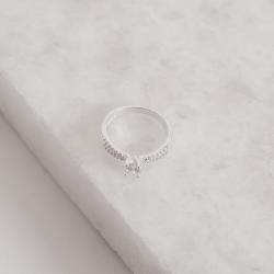 Anel solitário 5mm fio duplo cravejado | Mya Prata