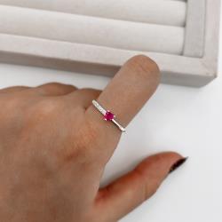 Anel zircônia coração cereja com cravejado lateral | Mya Prata