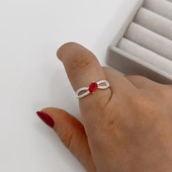 Anel zircônia oval cereja com fio duplo cravejado | Mya Prata