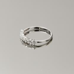 Anel meia aliança cravejada de zircônias losango e quadrada