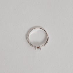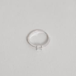 Anel meia aliança com solitário zircônia retangular 4mm | Mya Prata