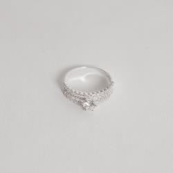 Anel fio triplo meia aliança e solitário 5mm | Mya Prata