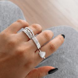 Descrição: Anel aliança toda cravejada detalhe zircônia coração fabricado(a) em prata