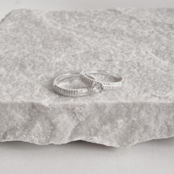 Dupla de anéis meia aliança e solitário 5mm | Mya Prata