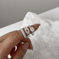 Descrição: Anel corrente detalhe elo cravejado fabricado(a) em prata