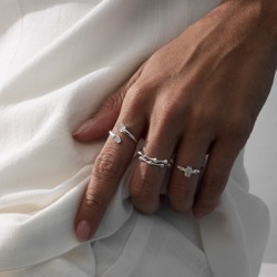 Descrição: Anel 2 zircônias gota regulável G fabricado(a) em prata