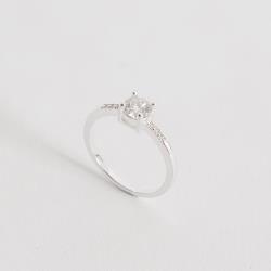 Descrição: Anel solitário moissanite 5mm com cravejado embutido fabricado(a) em prata