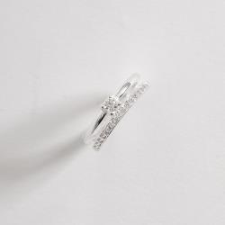 Anel duplo meia aliança com solitário cristal | Mya Prata
