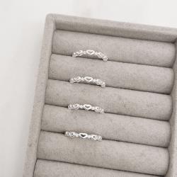 Descrição: Anel corações vazados e zircônias cristal fabricado(a) em prata