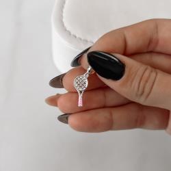Berloque pingente raquete resina rosa 16mm | Mya Prata