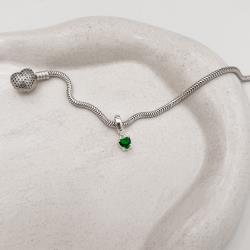 Berloque pingente zircônia coração esmeralda 5mm | Mya Prata