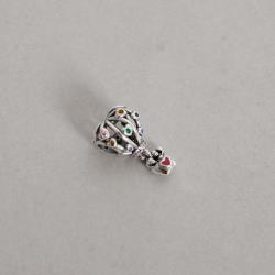 Descrição: Berloque separador balão coração com zircônias coloridas 11mm pingente casal envelhecido fabricado(a) em prata