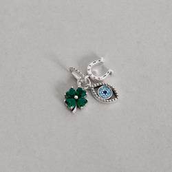 Berloque pingentes olho, trevo e ferradura com cravejado azul e verde envelhecido | Mya Prata