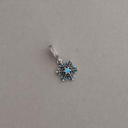 Descrição: Berloque pingente flocos de neve com zircônia azul 13mm elo cravejado envelhecido fabricado(a) em prata