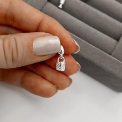 Berloque pingente cadeado cravejado 8mm | Mya Prata