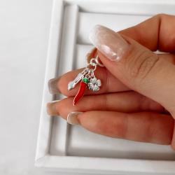 Berloque pingente patuá trevo, figa e pimenta resina | Mya Prata