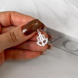 Berloque pingente placa Nutrição com símbolo cravejado 15mm | Mya Prata