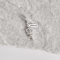 Berloque pingente placa Medicina com símbolo cravejado 15mm | Mya Prata