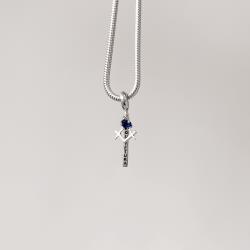 Berloque pingente placa Arquitetura com símbolo e zircônia azul envelhecido | Mya Prata