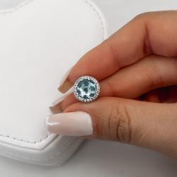 Berloque separador zircônia azul com cravejado detalhe corações vazados 12mm envelhecido | Mya Prata
