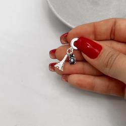 Berloque pingentes torre Eiffel e câmera detalhe cravejado | Mya Prata