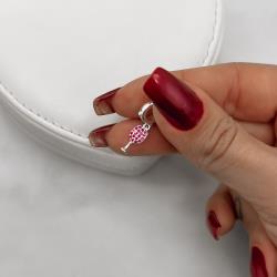 Berloque pingente taça cravejada pink 10mm elo detalhe coração | Mya Prata