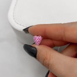 Berloque separador coração alongado cravejado pink 10mm | Mya Prata
