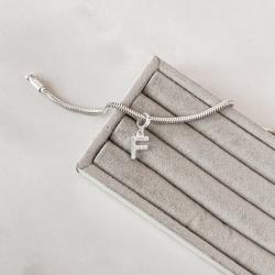 Berloque pingente letra F cravejada 10mm | Mya Prata