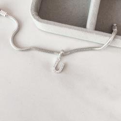 Berloque pingente letra U cravejada 9mm | Mya Prata