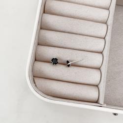 Brinco zircônia redonda ônix 6mm | Mya Prata