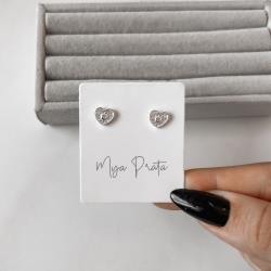 Brinco coração cravejado detalhe zircônia 8mm | Mya Prata