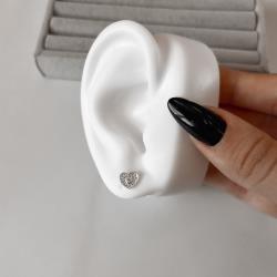 Brinco coração cravejado detalhe zircônia 8mm