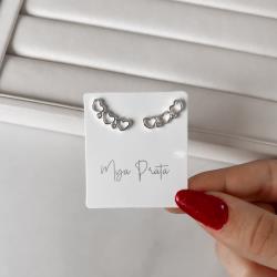 Brinco ear cuff 3 corações vazados detalhe zircônias tarraxa | Mya Prata