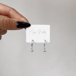 Argola 12mm pingente triângulo com zircônia tarraxa | Mya Prata