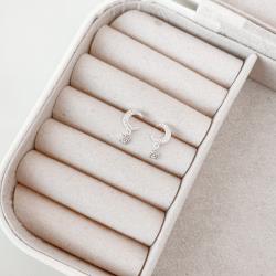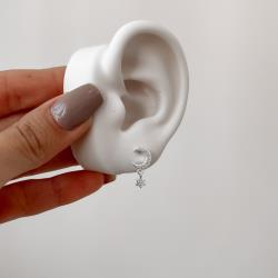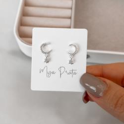 Brinco lua cravejada 8mm pingente estrela de Davi | Mya Prata