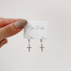 Argola click redonda 12mm pingente cruz | Mya Prata