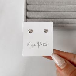 Brinco coração rendado detalhe zircônia 5mm | Mya Prata