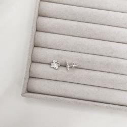 Brinco trevo detalhe cravejado 10mm | Mya Prata