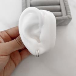 Brinco meia argola zircônias retangulares 12mm tarraxa