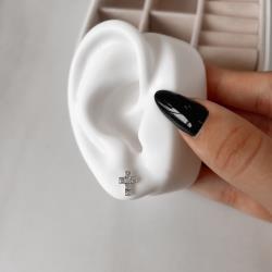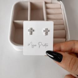 Brinco cruz zircônias quadradas 10mm | Mya Prata