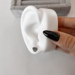 Brinco coração escrito love detalhe zircônias 8mm | Mya Prata