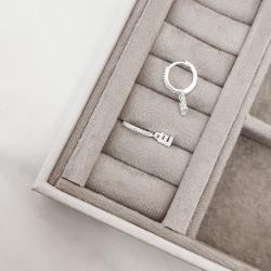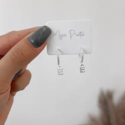 Argola click cravejada 14mm pingente letra E | Mya Prata