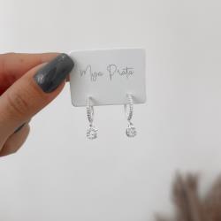Argola click cravejada 14mm pingente letra G | Mya Prata