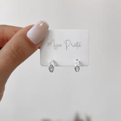Argola detalhe zircônia navete 9mm tarraxa | Mya Prata