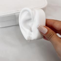 Argola click 12mm retângulo zigzag cravejado | Mya Prata