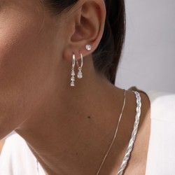 Argola click 13mm pingente zircônias gota | Mya Prata