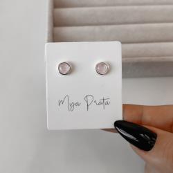 Brinco quartzo rosa 7mm | Mya Prata