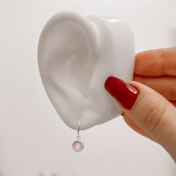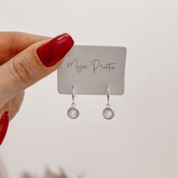 Argola 10mm pingente quartzo rosa tarraxa | Mya Prata